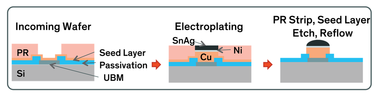 Figure 2: Illustration of the tin-silver capped copper pillar plating process