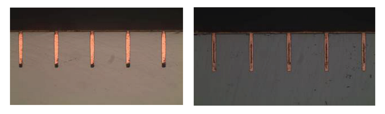Figure 5: Examples of low overburden during TSV plating (test vehicle source: Applied Materials)