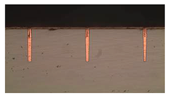 Figure 2: Example of poor plating in TSVs with center seam voids