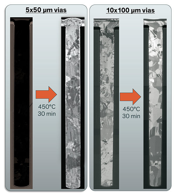 Figure 9: Examples of annealing high-purity copper in TSVs (courtesy of Applied Materials)