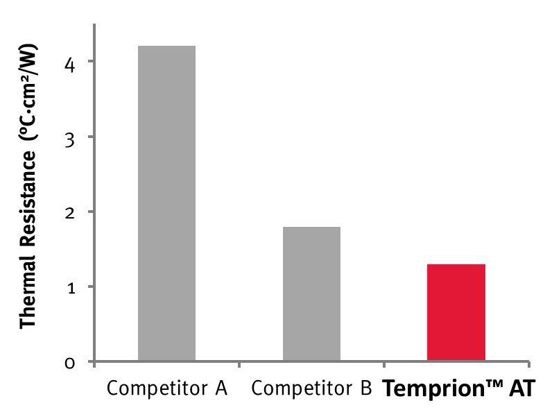 Efficient thermal transfer through Temprion® AT lowers the operating temperature of a TO-220 package when dissipating 15 W/cm2